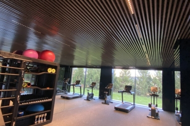 Подвесной потолок торговой марки K&R Design в помещениях: бассейн, кухня, гараж, комната для персонала, тренажёрный зал.