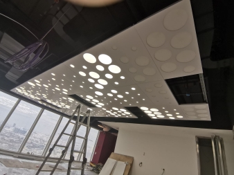 Производство и монтаж подвесного металлического потолка типа hook-on K&R Design.