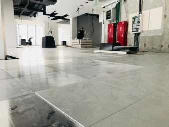 Для холлов и путей эвакуации нужно соблюдать пожарные нормы и желательно использовать более износостойкое покрытие. Идеальным решением становится фальшпол с керамогранитом.