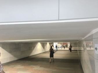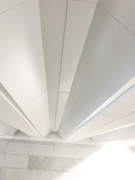 Потолок сложной формы типа hook-on внутри кессонов переходов станций метро. Изготовили и смонтировали потолок площадью 500 кв.м за 5 суток.
