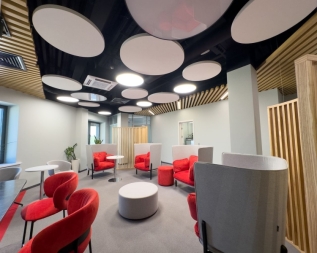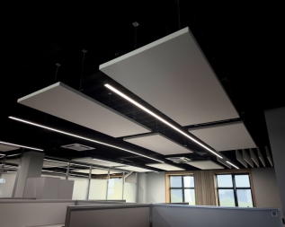 Офисное пространство, где каждый элемент работает на стиль, акустику и атмосферу. И потолки — в центре этого дизайна.