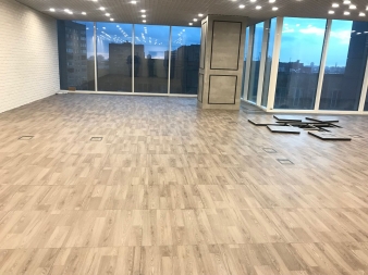 Производство, поставка и монтаж разъемного фальшпола из ДСП торговой марки K&R Design с предустановленным покрытием из ПВХ Tarket Sprint Pro. Подконструкция усилена акустическими стрингерами. ?Установлены напольные электролючки SIMON.