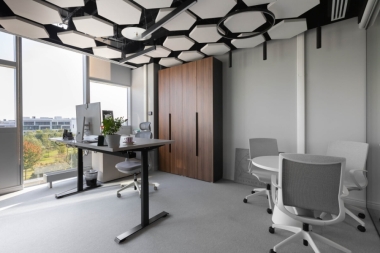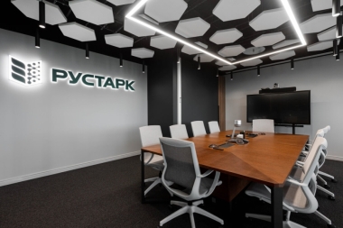 Наша компания осуществила поставку и монтаж подвесных потолочных островов торговой марки K&R Design® для офиса компании Рустарк