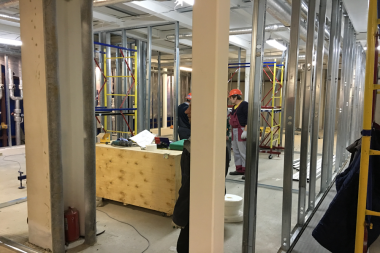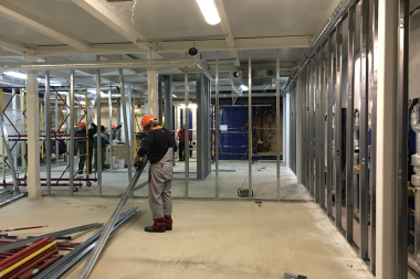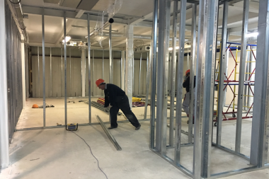 Монтаж перегородок и малярные работы.
