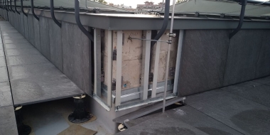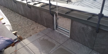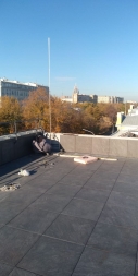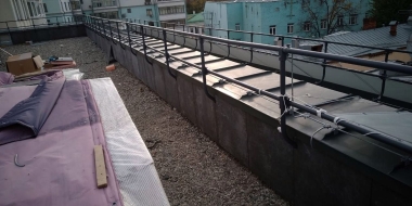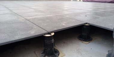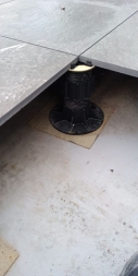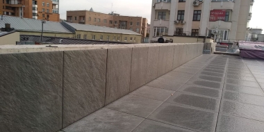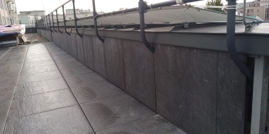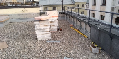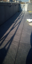 Мы помогли клиенту реализовать эту идею. Использовали традиционное решение: пластиковые опоры и плиты из утолщенного керамогранита, который прекрасно зарекомендовал себя в нашем климате как материал для финишного покрытия. В отличие от натуральной доски или декинга керамогранит не требует особого ухода и хорошо переносит перепады температуры, а выглядит просто отлично! Дополнительное преимущество фальшпола на кровле: в подпольном пространстве можно спрятать коммуникации и в любой момент провести ревизию - просто поднять несколько плит!