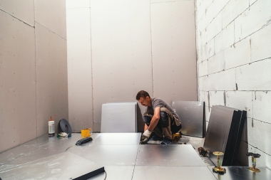 Работа по монтажу фальшпола в офисе телевизионной компании World Fashion TV.